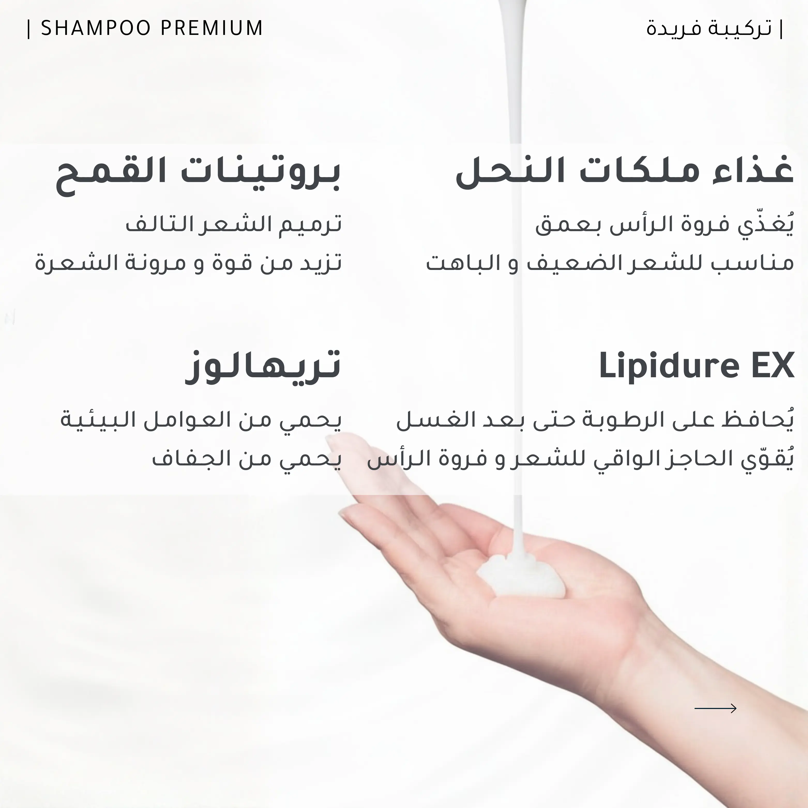 •  تـركـيـبـة شـامـبـو ذكيـة تـغـسـل بـلـطـف وتـحـافـظ عـلـى رطـوبـة الشـعـر