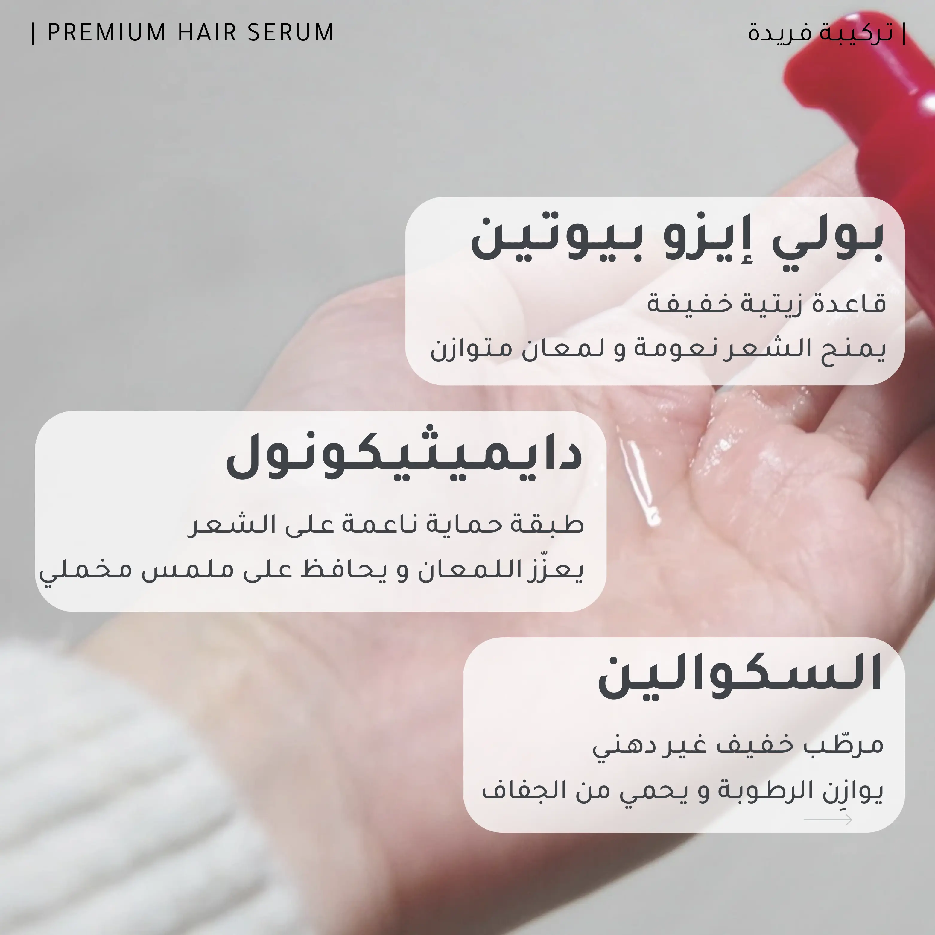 • كـميـة صـغـيـرة بـالـيـوم وبـتـحـسّ بالفـرق فـي النـعـومـة، اللـمـعـان وشـكـل الشـعـر